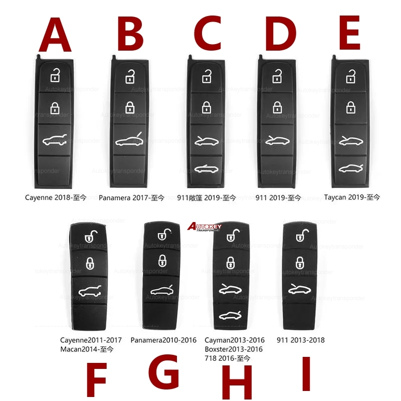 emote key rubber buttons for Porsche MACAN, CAYENNE, PANAMERA, 718, TAYCAN, and 911