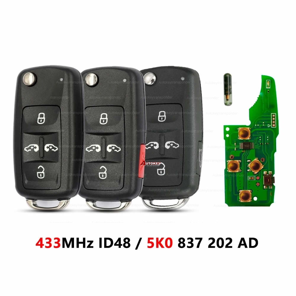 (433Mhz) 5K0 837 202 AJ / E Keyless Flip Remote Key For VW Golf VI